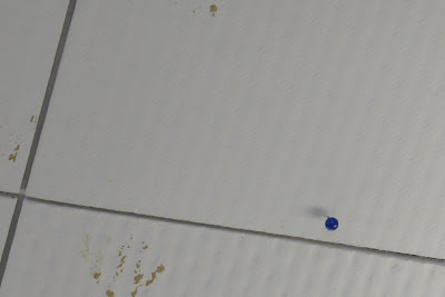 天井に十数本の画鋲が刺さっているのです。赤とか青とか色とか、とりどりです。